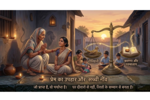 “जीजी, मेरे घर की असली नींव यही दोनों बहुएँ हैं। एक घर को बाहर की दुनिया से जोड़ती है, तो दूसरी घर को अंदर से थामे रहती है। दोनों अगर साथ न हों, तो यह घर टिक नहीं सकता। मैं तो कहती हूँ, जो घर में एक-दूसरे की कद्र करते हैं, वहाँ सुख अपने आप टिक जाता है।”